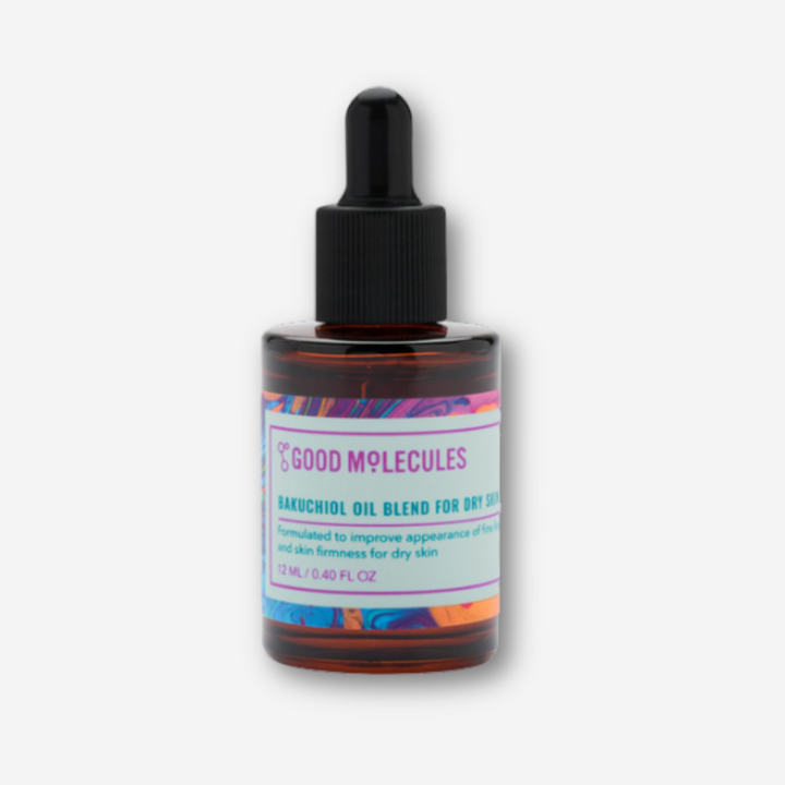 Promueve una piel más firme y más bella con este aceite facial de bakuchiol de Good Molecules. Formulado específicamente para los tipos de piel seca y deshidratada, Bakuchiol Oil Blend for Dry Skin cuenta con una mezcla nutritiva de aceites de semillas de chía y rosa mosqueta para hidratar al contacto, además de bakuchiol para reducir la aparición de líneas finas, arrugas y pérdida de elasticidad.