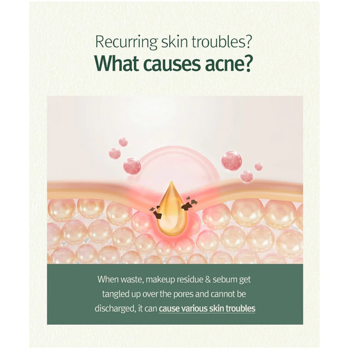 Contiene un 30% de extracto de árbol de té y CICA, que ayuda a las pieles propensas al acné, y madreselva para calmar la piel irritada.