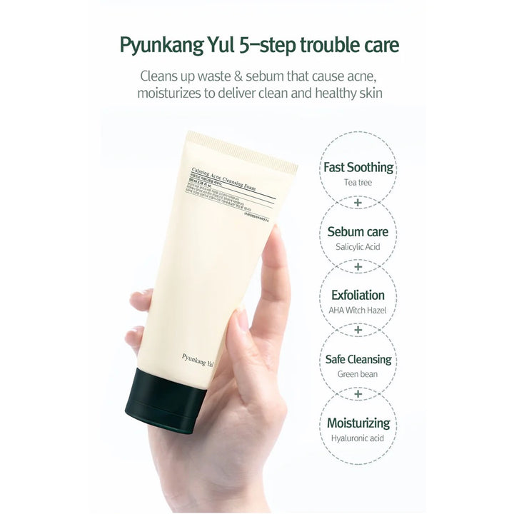¡5 Pasos de la piel propensa al acné en un tubo! Calma rápidamente, limpia los poros, elimina las células muertas, limpia con seguridad e hidrata.