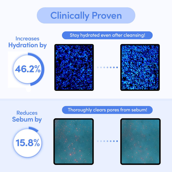 LIMPIEZA EFECTIVA Y SUAVE: Nuestro limpiador cuenta con surfactantes a base de plantas, incluyendo coco, maíz y otros extractos naturales, para limpiar a fondo el exceso de aceite, impurezas y maquillaje con una tasa de efectividad del 94.8%. Diseñado para ser suave con tu piel, garantiza una limpieza completa sin irritación, lo que hace que la eliminación del maquillaje sea fácil y sin complicaciones.