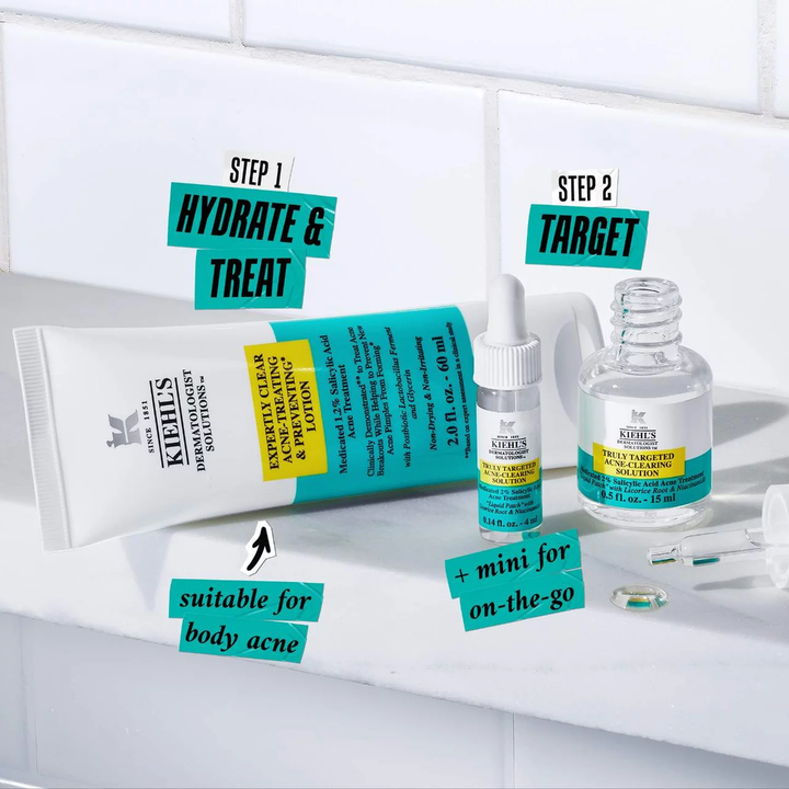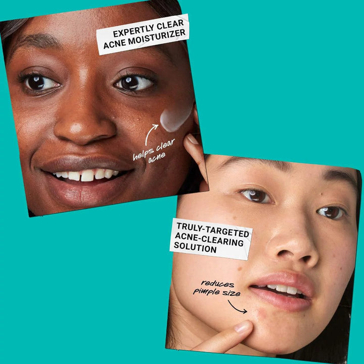 Qué más hay que saber: El Parche para Granos con Ácido Salicílico, con un 2% de Ácido Salicílico, actúa de forma invisible para reducir el aspecto de las imperfecciones y las rojeces. La Crema Hidratante Expertly Clear, con un 1,2% de Ácido Salicílico y un 2% de Niacinamida, hidrata la piel a la vez que elimina los granos existentes y previene los futuros.