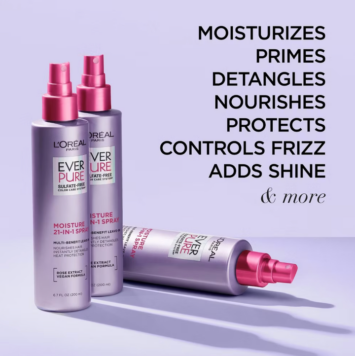 CÓMO PERFECCIONAR EL CABELLO TEÑIDO - Lava con champú y acondicionador EverPure Moisture para limpiar e hidratar suavemente. A continuación, vaporiza EverPure 21-in-1 Color Caring Spray por todo el cabello húmedo. Déjalo actuar y péinalo antes de peinarlo.