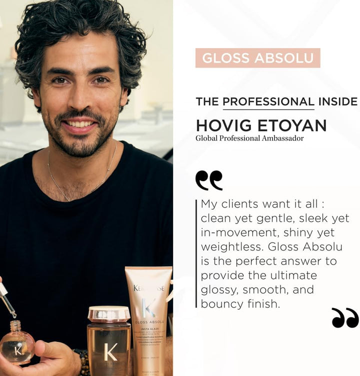 Para maximizar los resultados, combínelo con el resto de la gama Gloss Absolu. Empieza con Bain Hydra-Glaze para un brillo limpio definitivo. Continúa con el cuidado con el acondicionador Insta Glaze. Por último, peine con el producto sin aclarado Kérastase Glaze Drops como toque final de brillo.