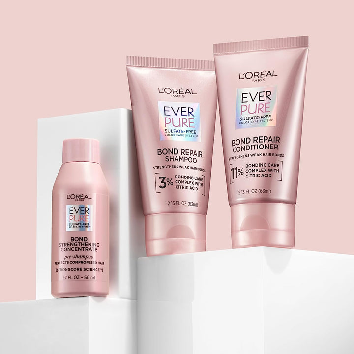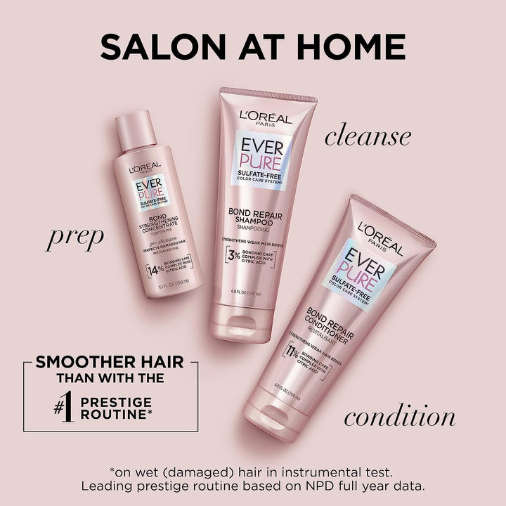 EverPure Bond Repair Shampoo and Conditioner Set: Repara la fuerza del cabello en un solo uso con sistema de tratamiento previo al champú, champú y acondicionador. Fortalece el cabello y reduce la rotura del cabello para revitalizar el cabello sedoso y suave sin pesar