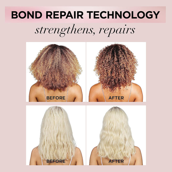 - Rutina de reparación de roturas del cabello: prepárese con el tratamiento previo al champú. Aplique 1 pulgada de las raíces, rastrille a través de longitudes. Dejar actuar 5-10 minutos, luego enjuagar. Sigue con el champú y acondicionador de reparación Bond. Sin parabenos, hidantoína DMDM, ftalatos añadidos, colorantes o gluten