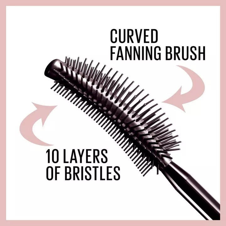 Exclusivo cepillo abanicador con diez capas de cerdas que revela capas de pestañas para un sensacional efecto de abanico completo
