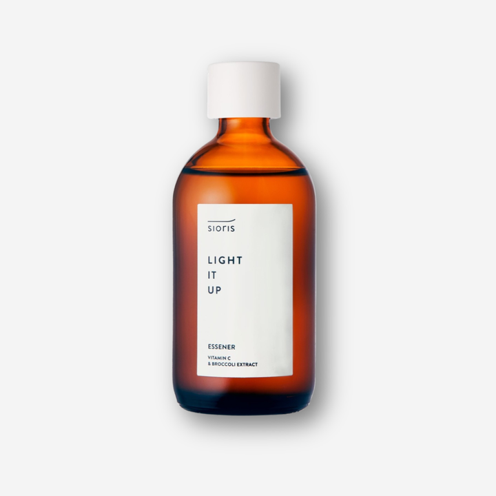 Sioris Light It Up Essener es una fórmula altamente concentrada de Esencia + Tónico para reavivar todo tipo de pieles. En 5 ensayos clínicos antienvejecimiento, el Light It Up Essener redujo la aparición de arrugas periorbitales y aumentó la luminosidad, elasticidad, densidad e hidratación de la piel en 4 semanas. Sioris reúne las Saponinas de toda la planta de Globo y el Sulforafano + Vitamina C del Brócoli como un potente impulso natural para su piel. Certificado COSMOS-Natural. Certificado Vegano.