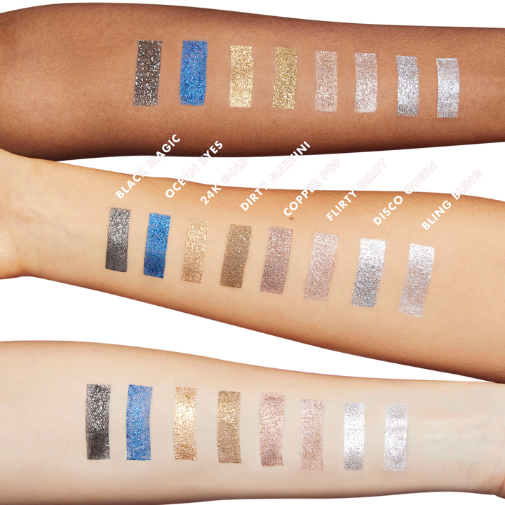 Para una sombra vibrante utiliza Flirty Birdy, Copper Pop, Dirty Martini, 24K Gold, Ocean Eyes y Black Magic