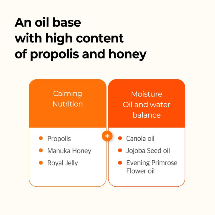 Ingredientes clave: El propóleo es un ingrediente natural que ayuda en el cuidado de problemas e irritaciones de la piel. B5 es un poderoso ingrediente que hidrata y mejora la función de barrera de la piel, al tiempo que reduce el enrojecimiento y la irritación. Miel y jalea real, rica en vitaminas y minerales, nutren y revitalizan la piel
