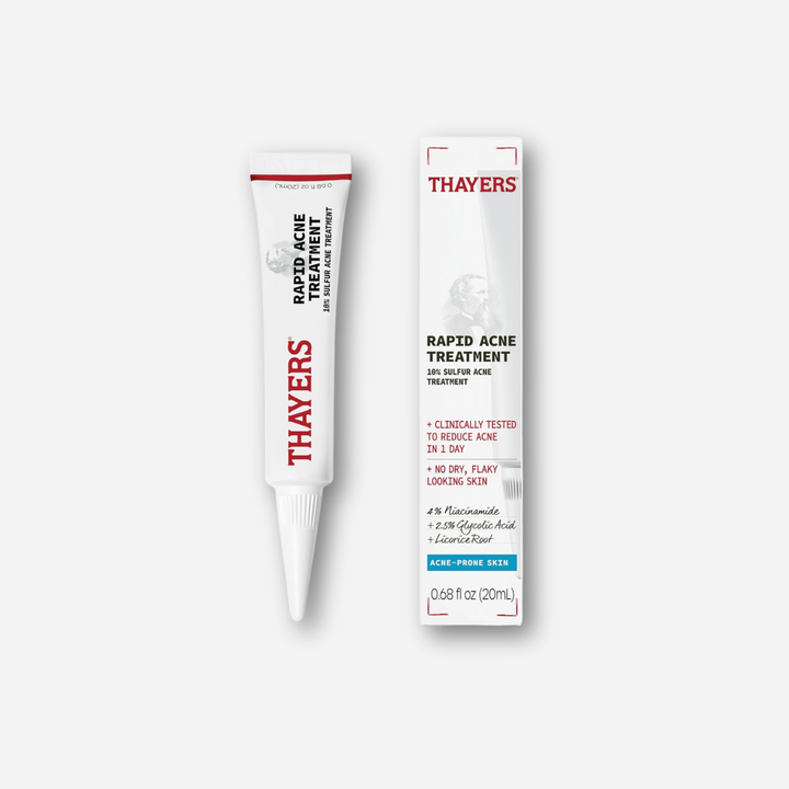 Tratamiento rápido para el acné: Presentamos un tratamiento para el acné de azufre THAYERS que funciona horas extras. El tratamiento rápido para el acné THAYERS ayuda a tratar rápidamente las manchas de acné al atacar las manchas y las espinillas cuando aparecen.