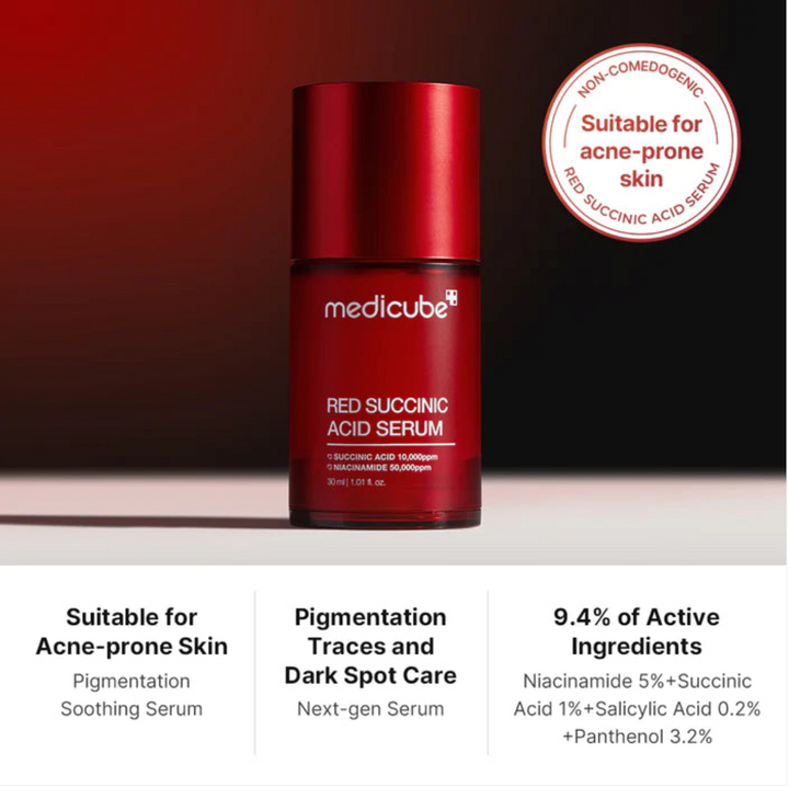 Sérum no comedogénico combinado con niacinamida y ácido succínico que ayuda a aliviar el acné, las espinillas, los brotes y las pigmentaciones postacné. 30 ml / 1,01 fl. oz.
