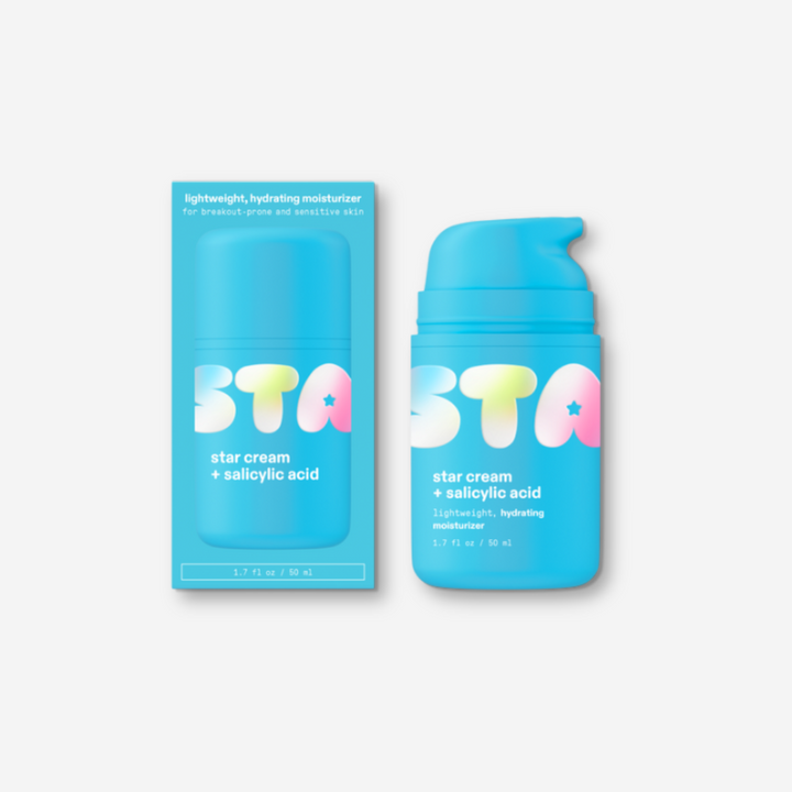 Star cream + ácido salicílico es una crema hidratante sin aceites que ayuda a minimizar los brotes y a reparar la sequedad para conseguir una piel feliz. la combinación de ensueño de ácido salicílico, ácido hialurónico y niacinamida trabaja conjuntamente para desobstruir los poros a la vez que retiene la hidratación. es como un abrazo para tu rostro, dos veces al día.