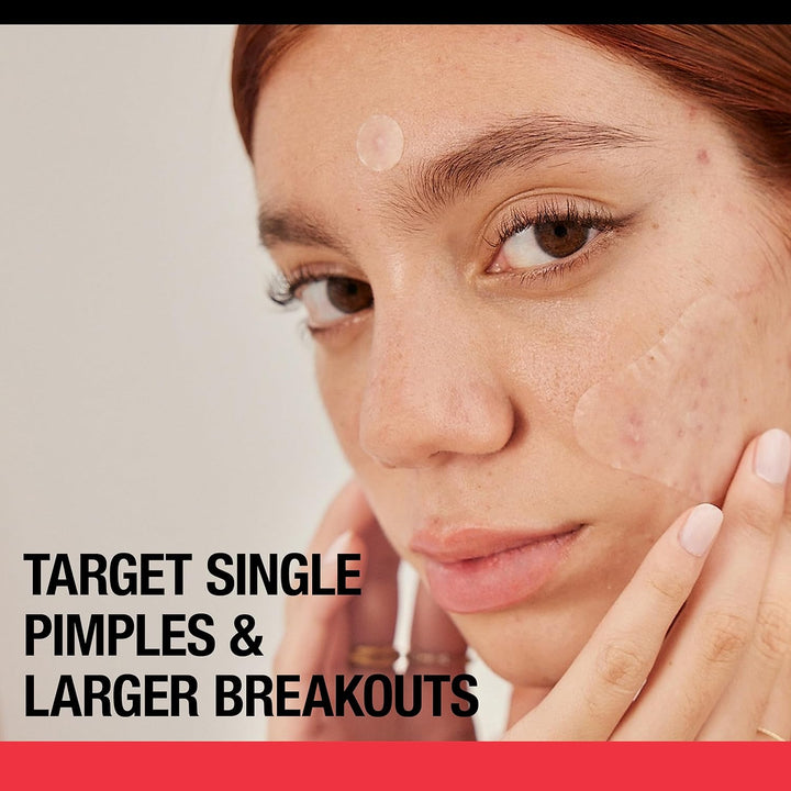 El paquete combinado de 16 unidades de parches hidrocoloides para manchas de acné persistente de Neutrogena incluye 12 puntos y 4 triángulos grandes que eliminan las impurezas de la piel para ayudar a que las espinillas se vean más pequeñas y planas después de un uso