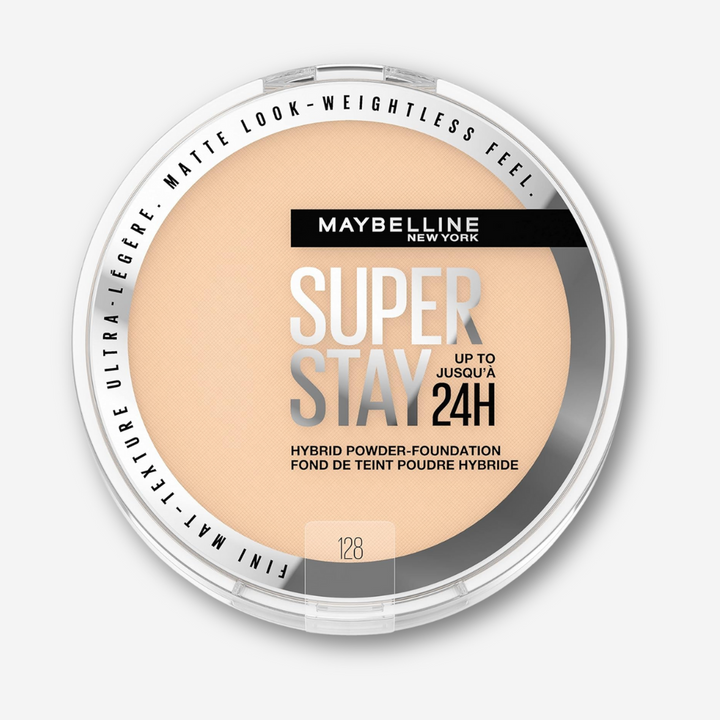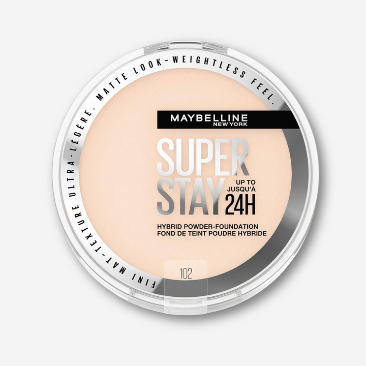 Consigue una cobertura de media a completa y un aspecto mate suave con la base en polvo Super Stay Up to 24HR Hybrid Powder-Foundation de Maybelline New York. Este súper polvo con tecnología híbrida tiene el rendimiento de un líquido con la comodidad de un polvo. Dura hasta 24 horas y resiste el sudor, el agua y la transferencia.