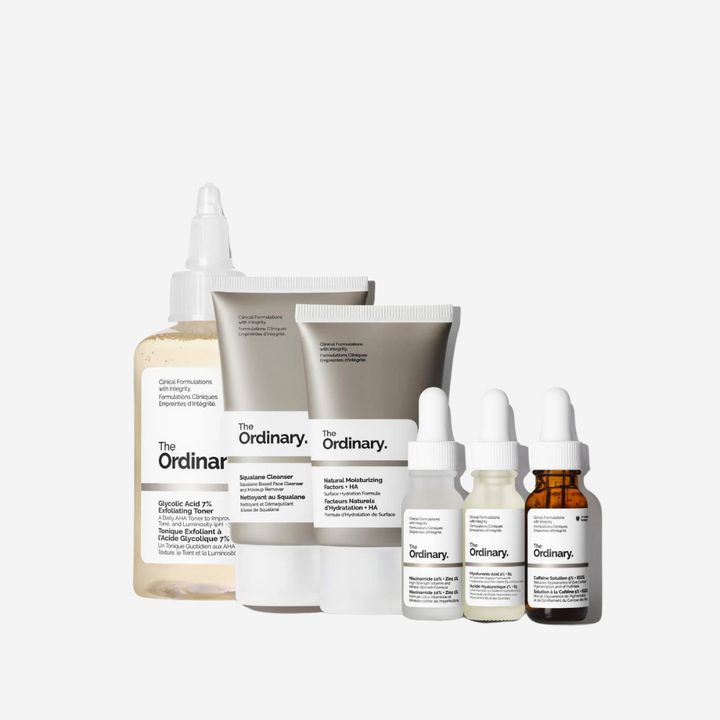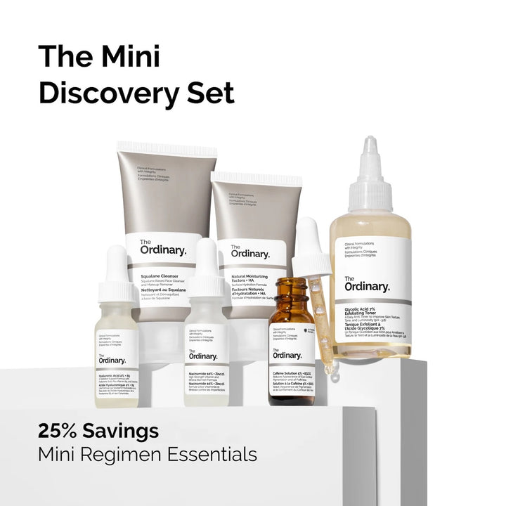 Qué es: Un régimen completo que incluye tamaños de viaje de los superventas clínicamente eficaces de The Ordinary para una piel que luce más suave, luminosa e hidratada.