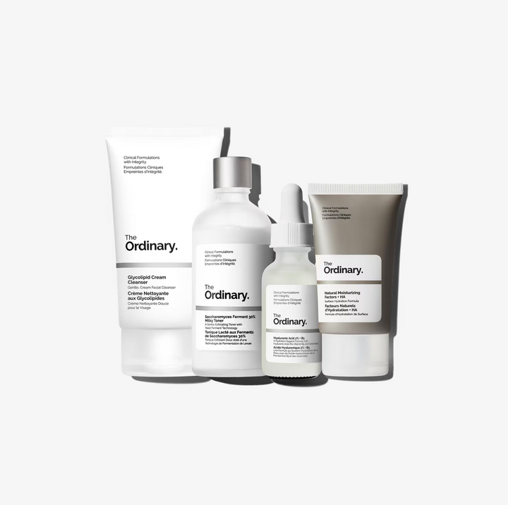 Este set ofrece un régimen completo para tratar la textura de la piel apagada, seca y desigual con productos que proporcionan hidratación y refuerzan la barrera cutánea. Incluye una bolsa complementaria para guardar las fórmulas de tu régimen diario.