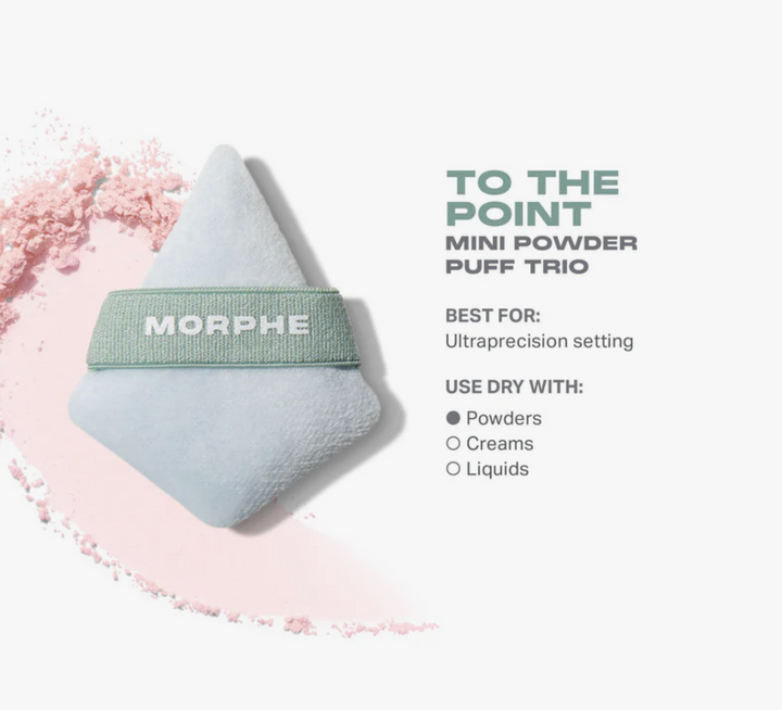 El trío de miniborlas Morphe To the Point incluye tres pequeñas borlas con forma de diamante para una aplicación ultraprecisa en la ojera. El material afelpado de cada borla absorbe y aplica el polvo a la perfección, mientras que la punta lo aplica en zonas difíciles de alcanzar. Gracias a la banda elástica, disfrutarás de una fijación controlada para obtener resultados impecables y sin esfuerzo.