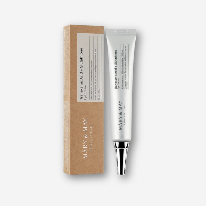 Mary&May Ácido Tranexámico + Glutatión Crema de ojos, 1.000ppm de ácido tranexámico, 1.000ppm de Glutatión para el cuidado intensivo de las ojeras en el contorno de los ojos.