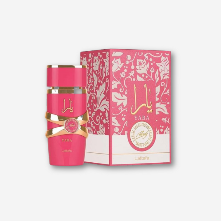Yara Candy de Lattafa Perfumes es una fragancia de la familia olfativa Floral Frutal Gourmand para Mujeres. Esta fragrancia es nueva. Yara Candy se lanzó en 2024. Las Notas de Salida son grosellas negras y Mandarina verde; las Notas de Corazón son Strawberry Fizz Candy y gardenia; las Notas de Fondo son vainilla, ámbar, sándalo y almizcle.